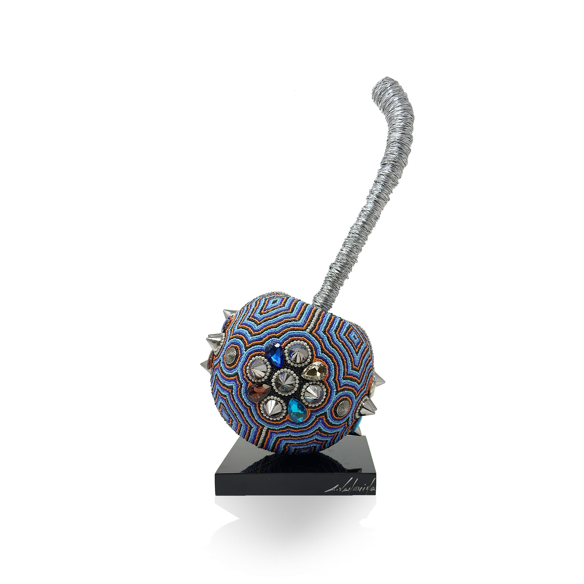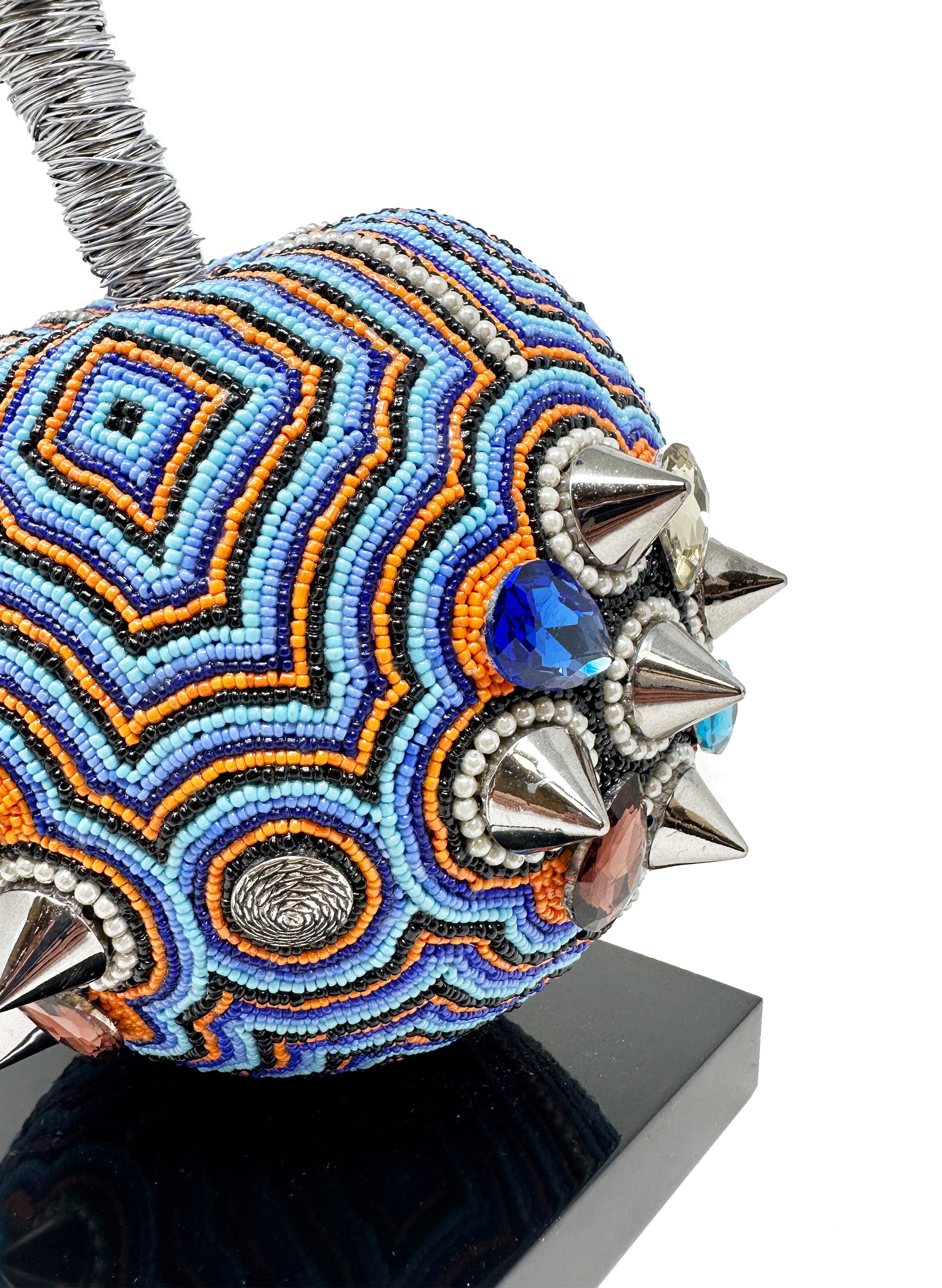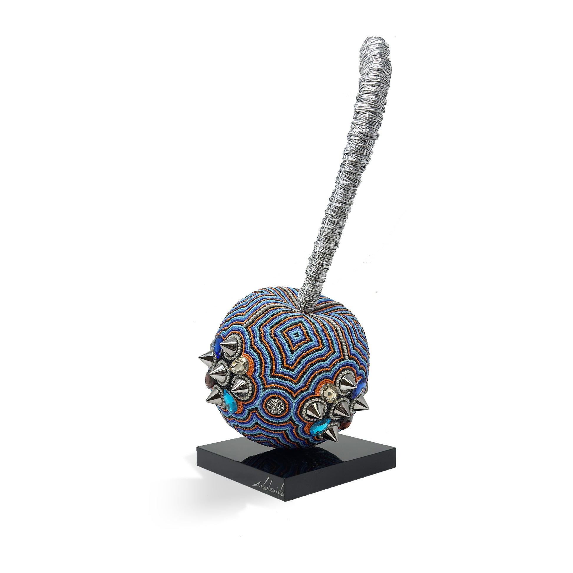 Each of them exquisite crafted by hand, with a wooden base and embellished with thousands of beads and spikes, creating a combination that makes these art pieces a one of a kind artwork to shown in your favorite room.