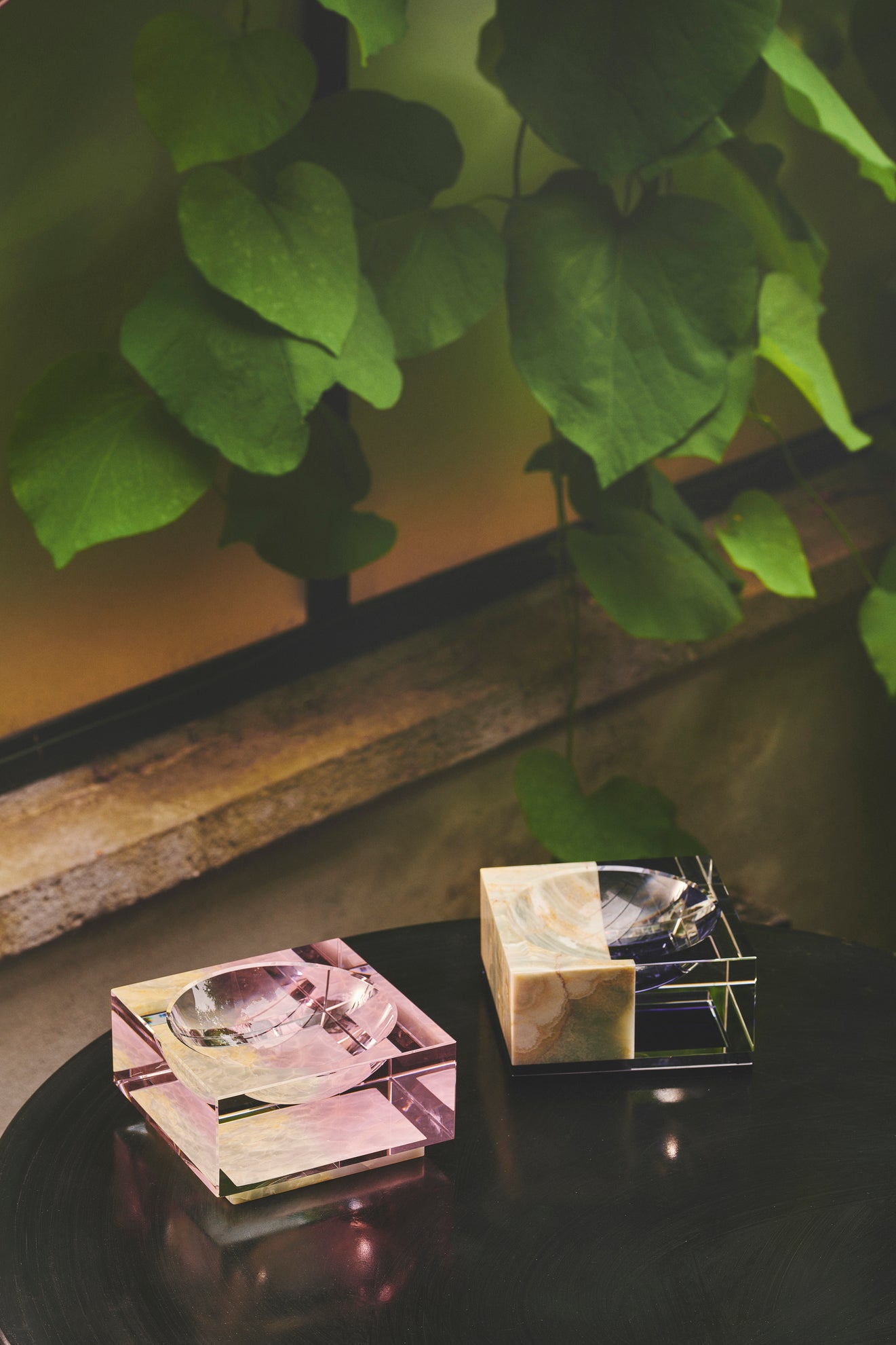 Illusion Half Onyx Bowl serve dual purposes as functional tableware and artistic centerpieces. This bowl is a unique creation, featuring half onyx and half crysral.