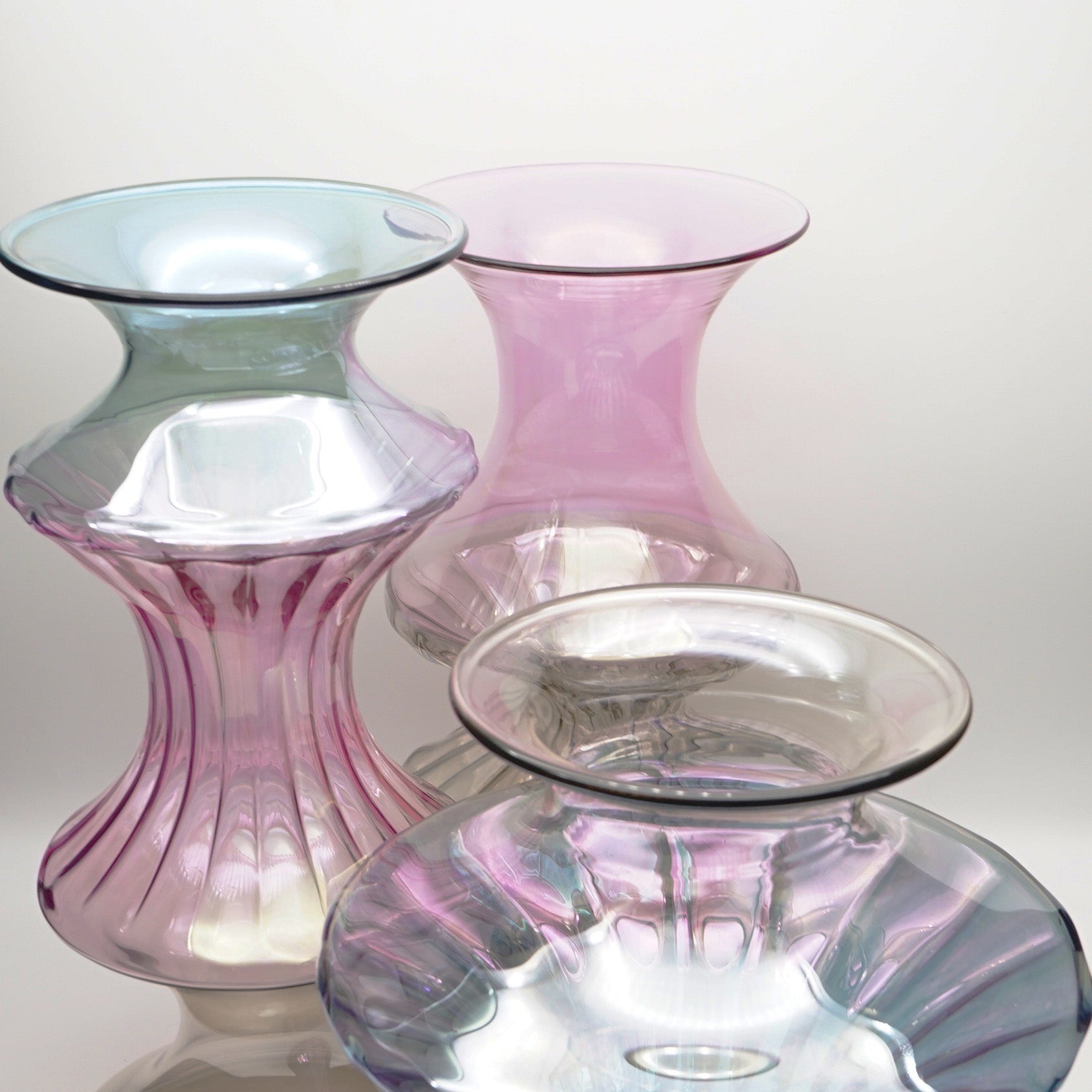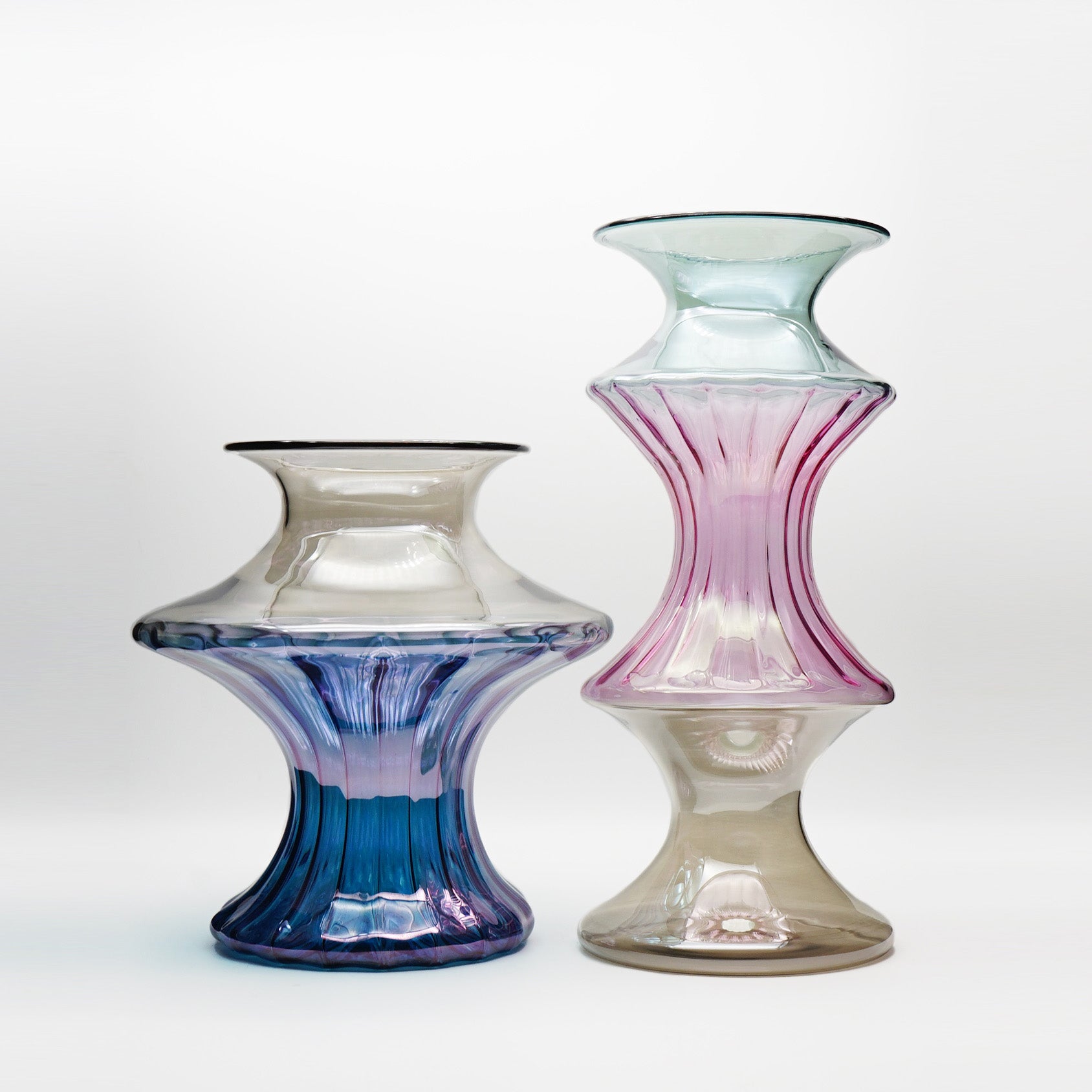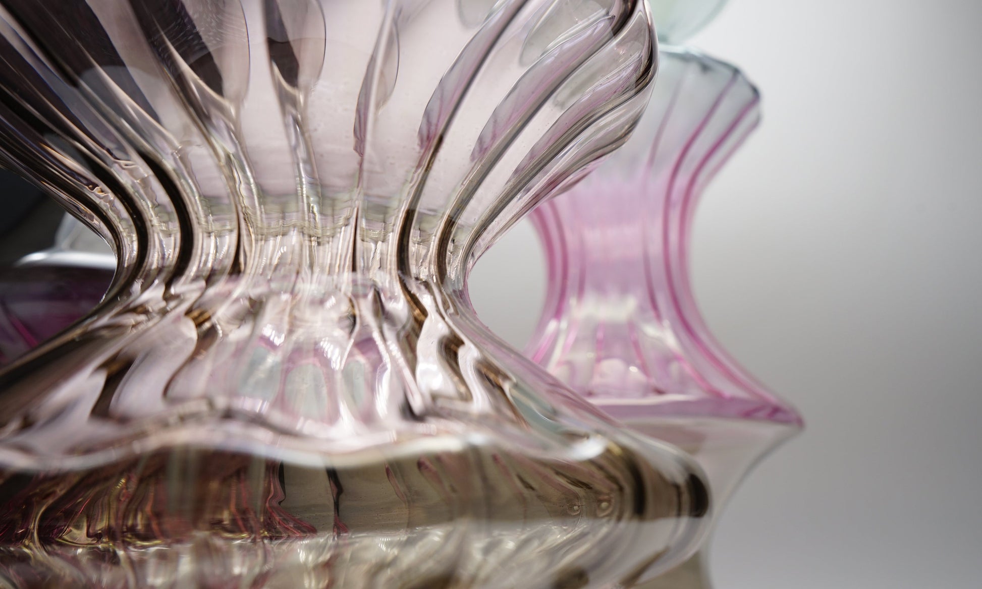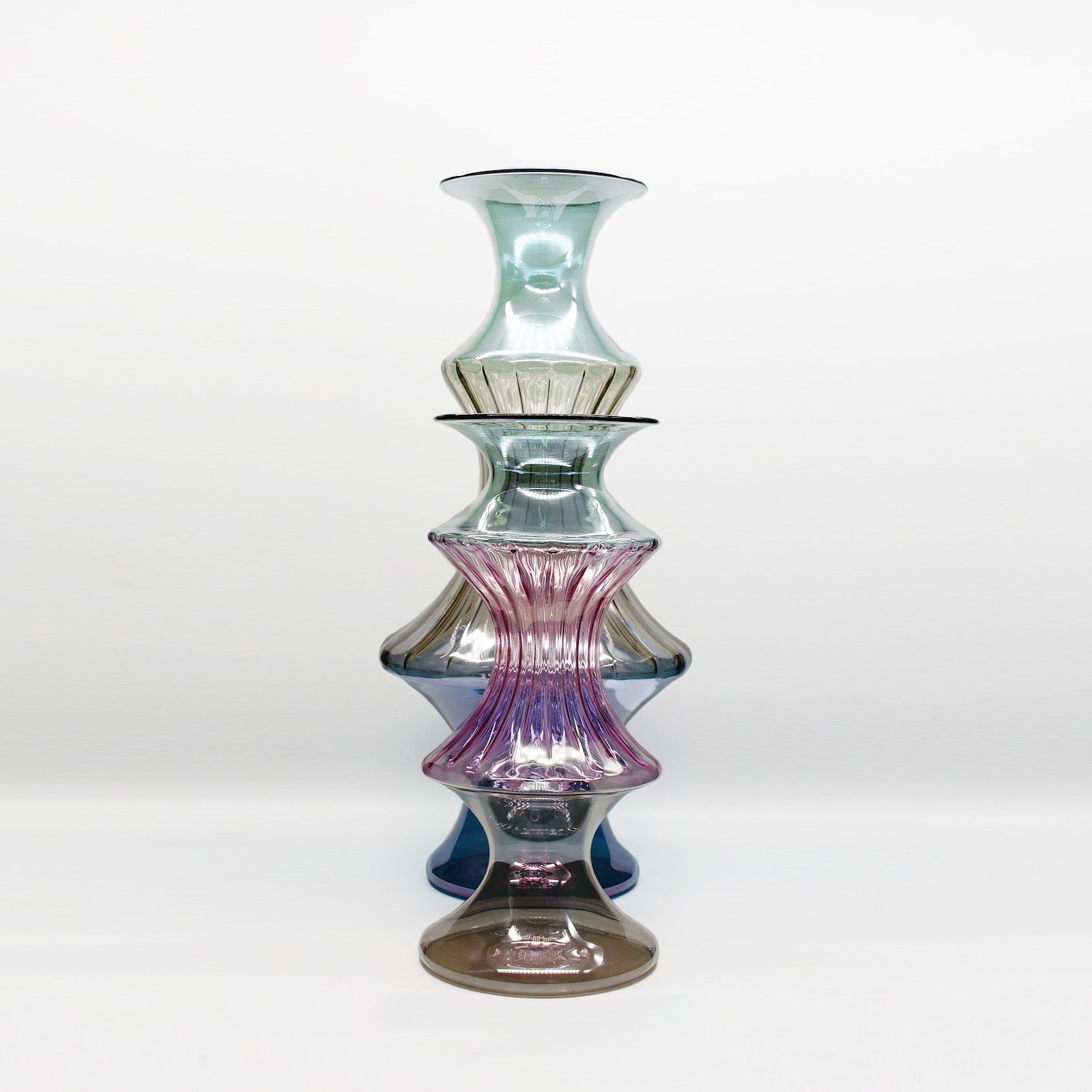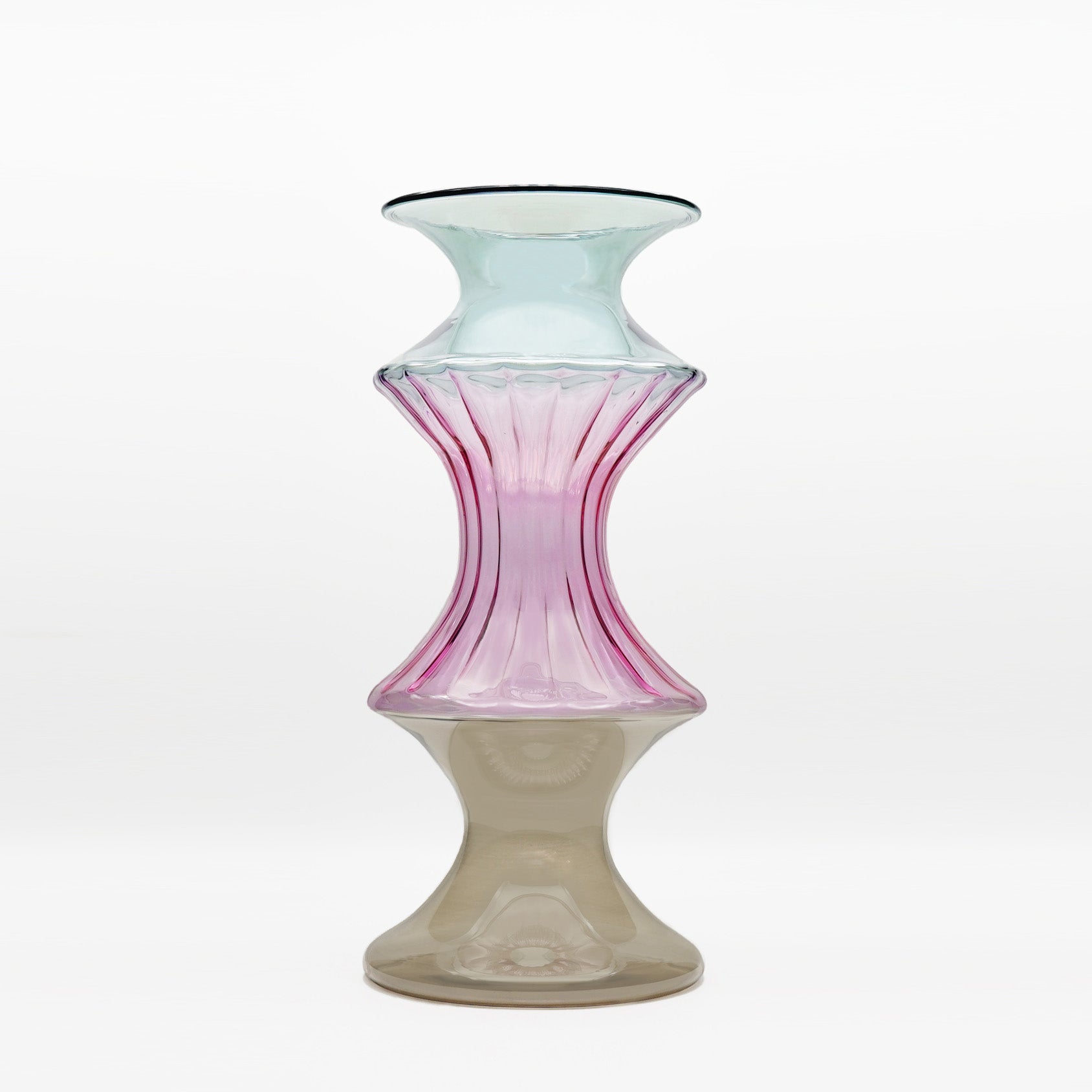 The vases in the Madame set reinterpret traditional Venetian vases, their refined details and delicate colours. The shape stems from the repetition of the flaring, which, with careful breakdown and composition, creates shapes that are always different but each with a strong personality.