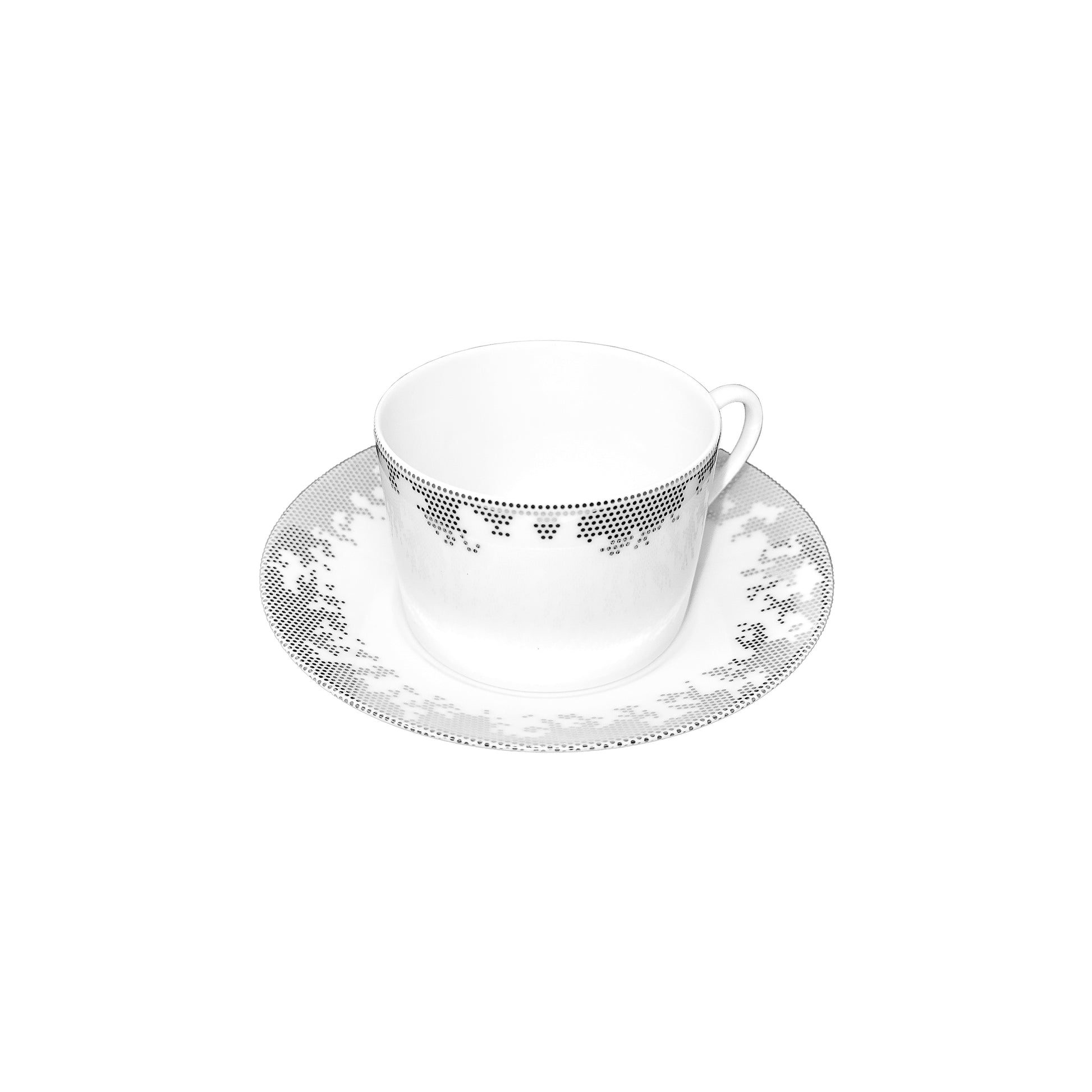 From Non Sans Raison collection Avant ici Maintenant Platinum, this set of breakfast cup and saucer is the perfect combination to add to the Perspective 5.