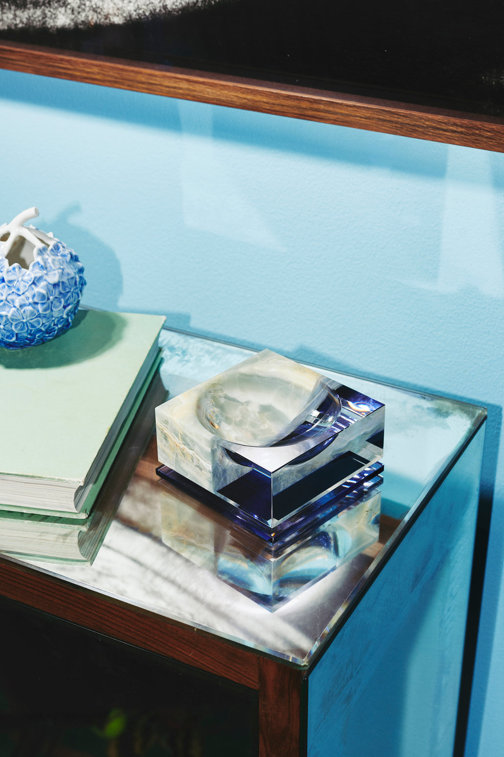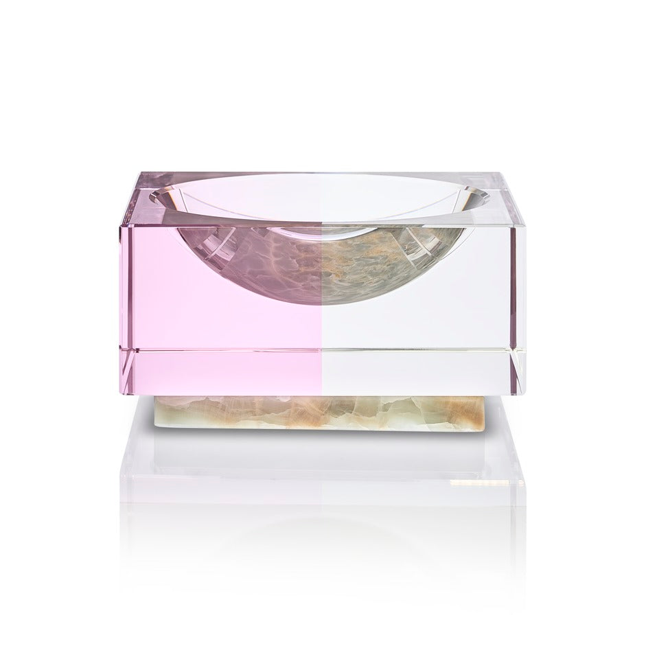 Illusion Half Onyx Bowl serve dual purposes as functional tableware and artistic centerpieces. This bowl is a unique creation, featuring half onyx and half crysral.